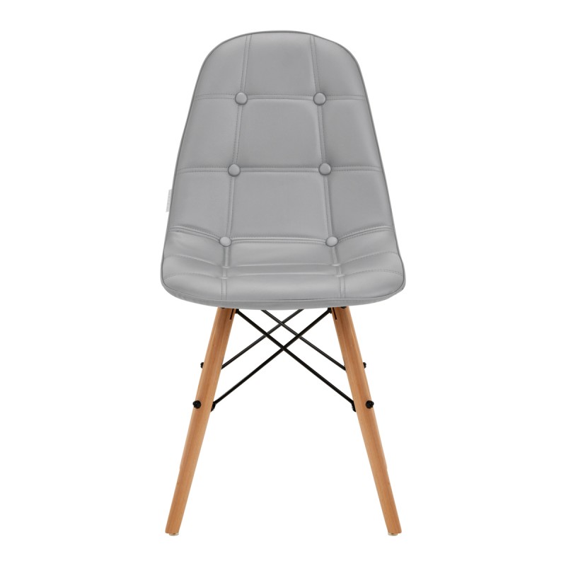 Sjedalo je ispunjeno pjenom i prekriveno presvlakom od ugodne sintetičke kože u nijansama sive boje, koju je vrlo lako održavati čistom. Manje mrlje i prljavština mogu se lako ukloniti lagano navlaženom krpom. Estetsko prošivanje i pažljivo šivanje pružaju elegantan dodir, dok metalni okvir u nijansama crne boje dodaje stabilnost namještaju. Noge s mat završnom obradom završene su plastičnim zaštitama, dodatno štiteći od slučajnih oštećenja. Stolica u skandinavskom stilu udoban je komad namještaja koji će postati ukras recepcije svakog kozmetičkog salona.