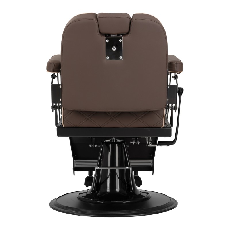 Solid construction ensures stability and high comfort of use. The seat is filled with deformation-resistant foam, and upholstery made of soft, matte synthetic leather provides the furniture with durability and comfort. Moisture-resistant materials are not only durable but also easy to clean. The brown shade of upholstery gives the chair a unique character, and its elegant style fits perfectly into any barbershop decor.