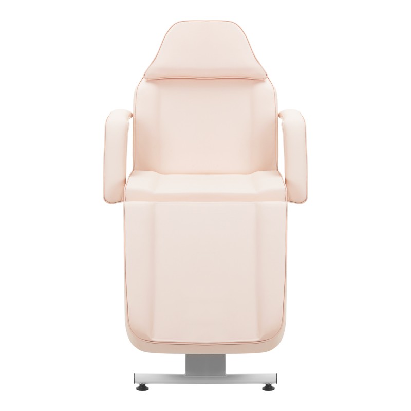 Stabilni, mekani nasloni za ruke jamče korisniku odgovarajuću potporu . Ovi elementi, podijeljeni na pola, su pomični, tako da se dobro prilagođavaju promjeni položaja naslona , a mogu se i lako ukloniti. Skriven ispod pravilno profiliranog jastuka, otvor u naslonu za glavu čini stolicu savršenom za tretmane lica i leđa .