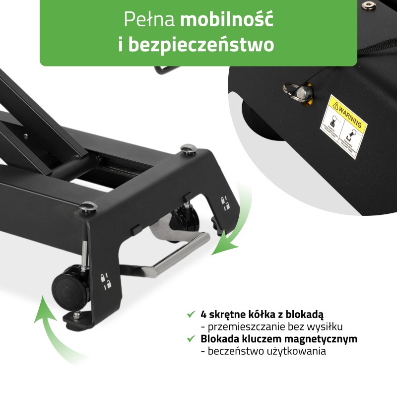 Ručni daljinski upravljač s funkcijom zaključavanja: Ručni daljinski upravljač omogućuje brzo i jednostavno podešavanje visine. Dodatna funkcija zaključavanja sprječava slučajne promjene visine, povećavajući sigurnost tijekom tretmana.
