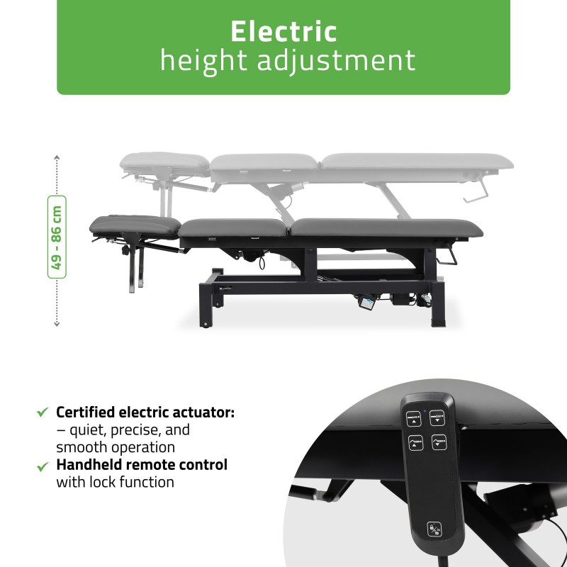 Precizno pozicioniranje: S električnim upravljanjem i naprednim značajkama podešavanja, Fortis 5 ERGO daje terapeutima potpunu kontrolu nad položajem pacijenta, što je ključno za izvođenje preciznih tretmana.