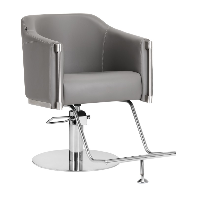 Frizerska stolica Gabbiano Burgos opremljena hidrauličkim podizačem praktičan je komad namještaja koji će postati ukras frizerskog salona . Klasična shema boja, namjenski oslonac za noge i ukrasni elementi u srebrnim tonovima daju joj elegantan izgled. Visoka funkcionalnost pružit će udobnost i frizerima i korisnicima.