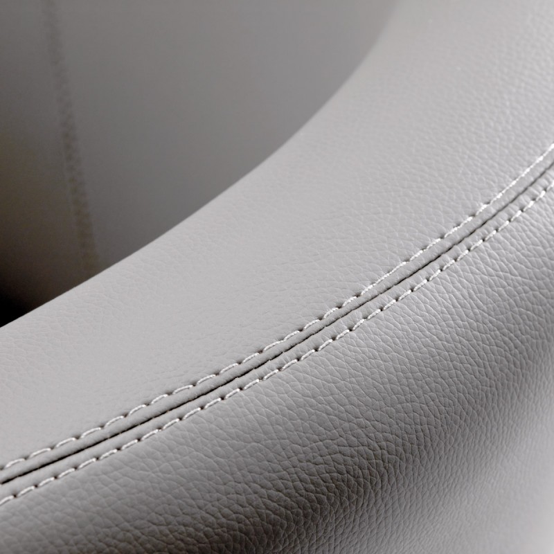 Stolica je ispunjena pjenom koja je izdržljiva i ne deformira se , što osigurava udobnu upotrebu tijekom dugog vremena. Presvlaka je izrađena od ugodne imitacije kože sa specifičnom strukturom. Zahvaljujući korištenju takvog materijala, oprema je otporna na vlagu, izdržljiva i jednostavna za čišćenje . Presvlaka u nijansama sive i dekorativni elementi u srebrnim nijansama daju joj izraz bezvremenske elegancije . Njena prepoznatljiva klasična završna obrada čini je da izgleda sjajno u gotovo svakom prostoru.