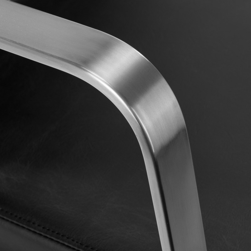 The profiled chair provides adequate lumbar support and, therefore, high comfort of use. Metal armrests in shades of chrome with a geometric shape allow for the correct positioning of the customer's shoulders. Filling with durable, deformation-resistant foam and upholstery made of pleasant-to-touch synthetic leather in shades of black ensure the durability of the furniture, ease of cleaning and comfortable use for a long time. The original, elegant appearance of the hair wash unit gives the interior a unique expression. The set includes complete fittings in shades of chrome, including a faucet, a shower head and dedicated hoses to provide a complete set of tools for work.