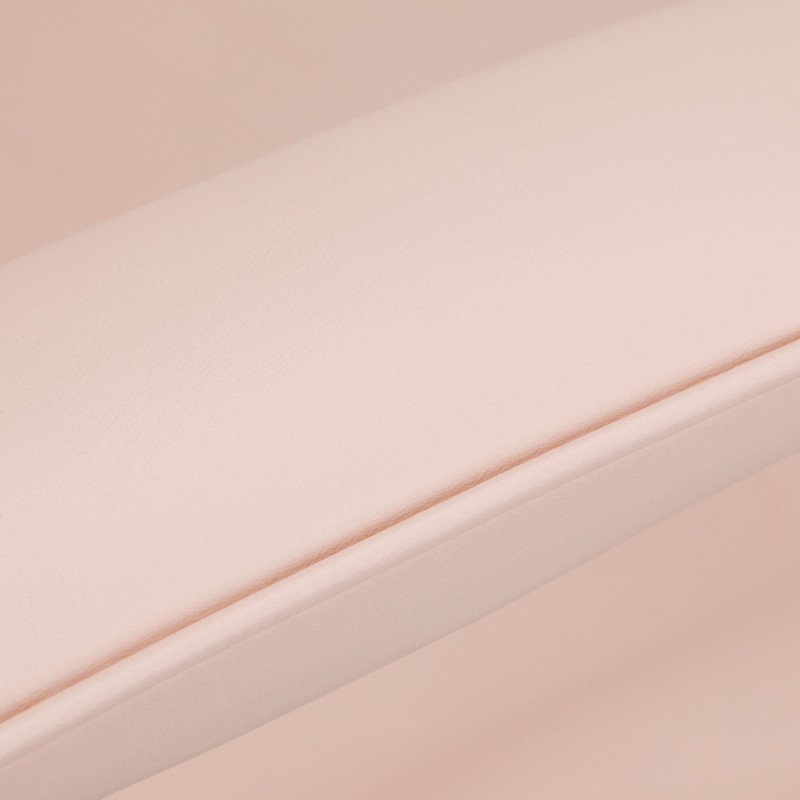 Stolica je ispunjena pjenom odgovarajuće čvrstoće i presvučena polumat imitacijom kože u nijansama ružičaste. Zahvaljujući korištenju takvog materijala, oprema je udobna za korištenje, otporna na vlagu i jednostavna za čišćenje . Pravilno profilirani rubovi daju sjedalu ergonomski oblik . Čvrsta konstrukcija jamči trajnost i stabilnost . Jednostavan dizajn i klasične boje omogućuju joj da se uklopi u svaki interijer.