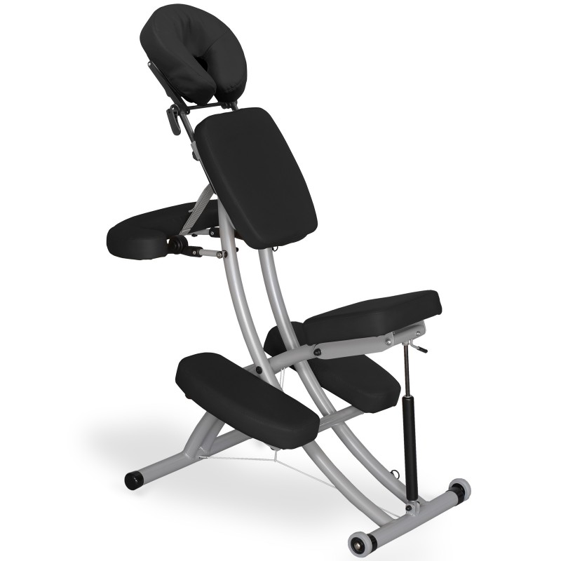 Iznimno lagana, napredna prijenosna masažna stolica s brzim i vrlo jednostavnim pneumatskim podešavanjem visine. Savršena za masažu na radnom mjestu, masažu kralježnice kao i drugih dijelova leđa.