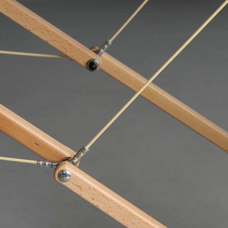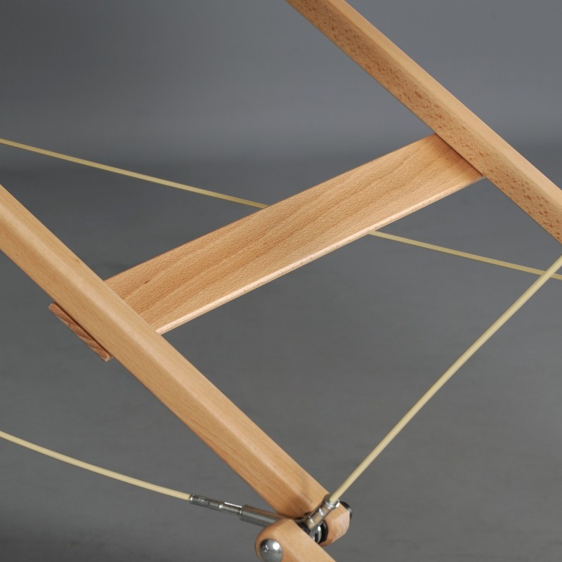 Stol cijene maseri kojima je potrebna povećana otpornost na opterećenje i obraćaju pažnju na prirodnu ljepotu drva. Konstrukcija je stabilizirana čeličnim kablovima s otpornim spojevima i prilagođena je opterećenju od 450 kg.