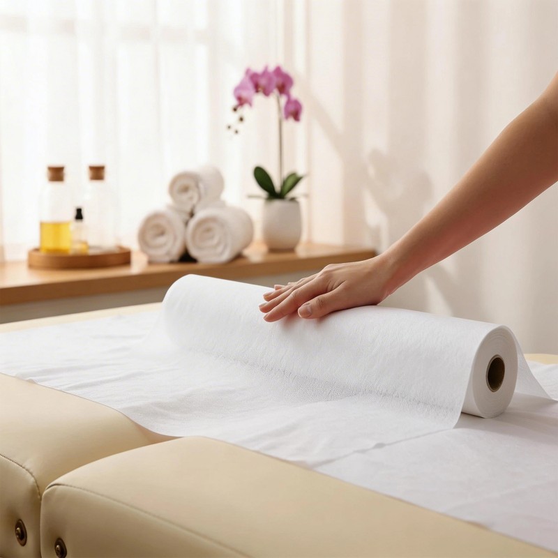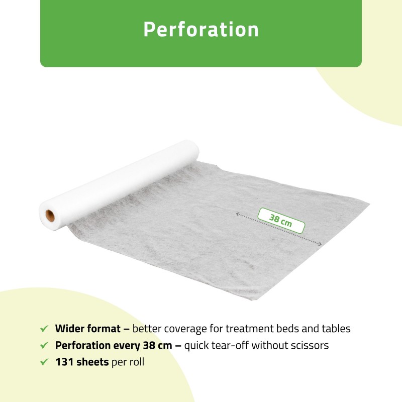 The 70 cm wide non-woven roll sheet is designed for practices using wider treatment beds and massage tables. The increased material surface allows full coverage of the working area, reducing exposed edges and improving comfort during procedures.
