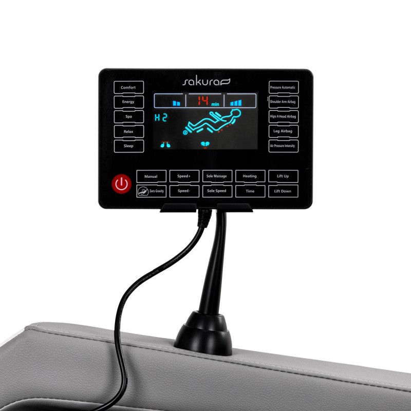 Namještaj je opremljen lako čitljivom upravljačkom pločom s LCD zaslonom koji se može postaviti na ručku montiranu na desnom naslonu za ruke ili držati u rukama. To čini upravljanje stolicom intuitivnim i udobnim . LCD zaslon prikazuje informacije o trenutnom radu uređaja, uključujući područje tijela koje se masira, intenzitet masaže, vrijeme tretmana i odabrani program. Ploča vam omogućuje slobodno podešavanje postavki stolice i odabir načina masaže. Također vam omogućuje podešavanje trajanja sesije, s opcijama od 5, 10, 15, 20, 25 ili 30 minuta .