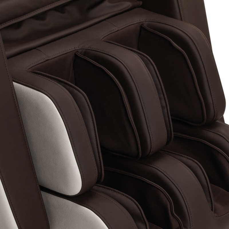 Dugačka masažna staza s glavama duga je 95 cm , pokrivajući bedra, stražnjicu, bokove, kralježnicu i vrat. Mehanizam za masažu temeljito i ugodno masira mišiće na nekoliko načina. Četiri silikonske masažne glave nove generacije , koje se kreću promjenjivom brzinom gore-dolje i bočno, pružaju učinkovitu masažu leđa , oponašajući rad ljudskih ruku. Njihovi pokreti izvode tapkanje, gnječenje, pritiskanje i shiatsu masažu, čime se poboljšava cjelokupno stanje tijela i uklanja bol . Nakon svake seanse masaže na stolici, dolazi do primjetnog smanjenja napetosti mišića, a tijelo postaje ugodno opušteno i energizirano. Ugrađeni valjak za masažu stopala koristi metode akupresure , a njegov rad učinkovito opušta mišiće, uklanja umor i pozitivno utječe na cjelokupno blagostanje.