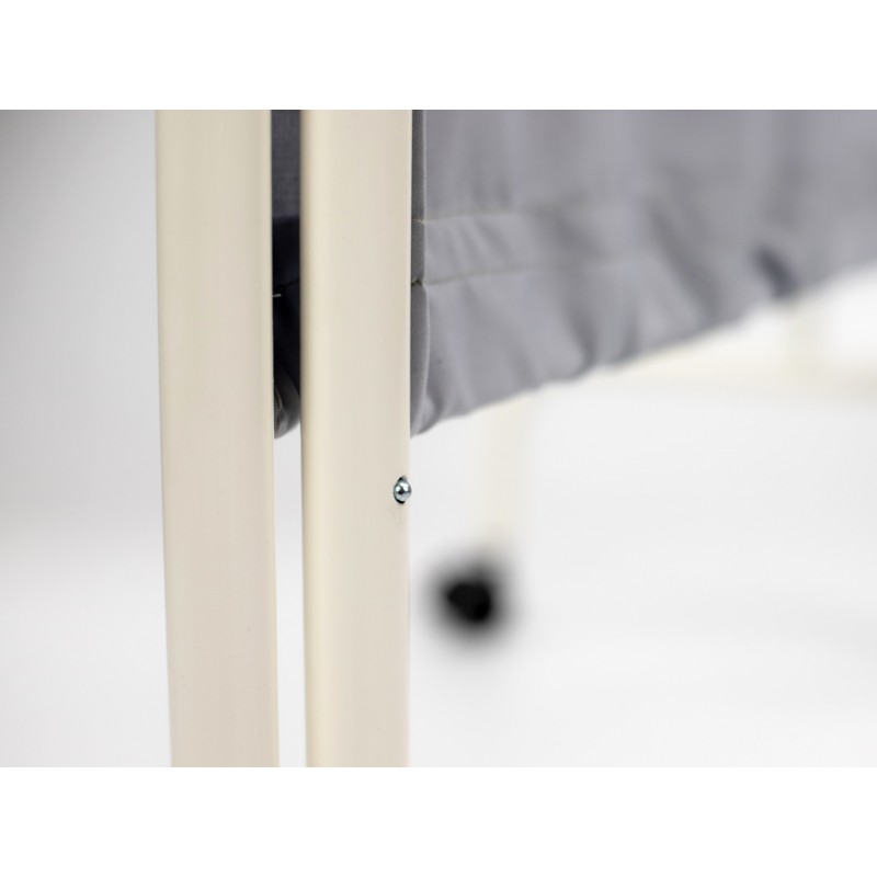 Modularna pregrada Standardno izrađena od čelika presvučenog izdržljivim bijelim ili crnim lakom u prahu. Kotačići s kočnicama omogućuju udobno kretanje i stabilizaciju čak i na skliskoj površini.