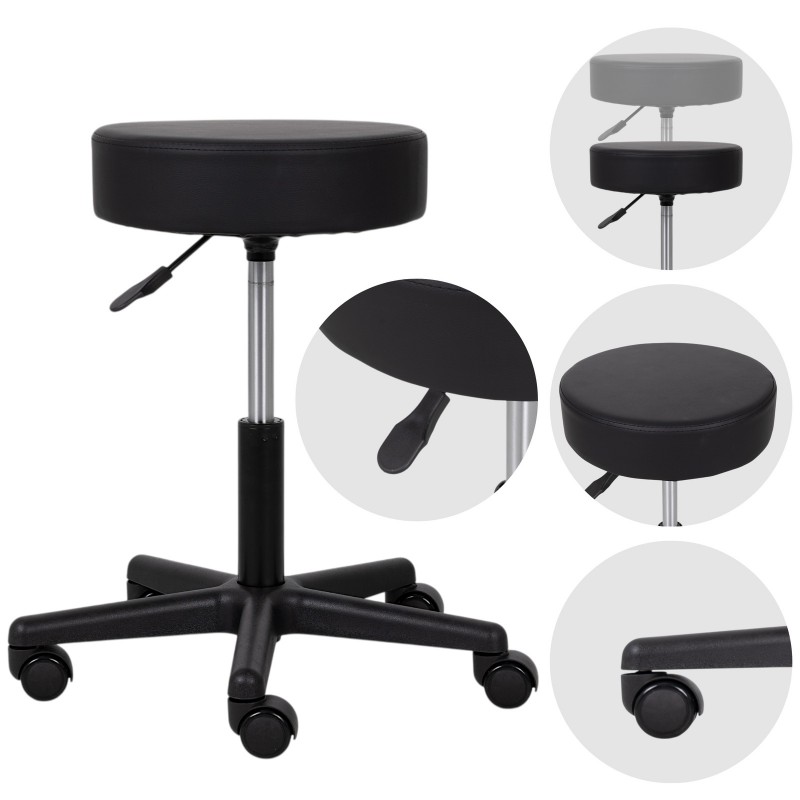The TIMO cosmetic stool is a mobile work seat designed for tasks that require precision and smooth position changes. It is well-suited for beauty salons, medical clinics, hair salons, and other professional environments where quick movement around the client and efficient workstation organization are essential.